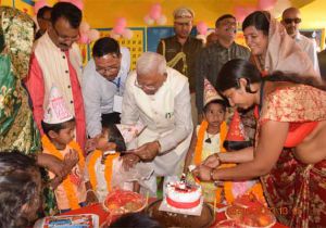 महामहिम राज्यपाल ने किया आंगनबाड़ी केंद्र चरगोड़ा का निरीक्षण बच्चों का मना बर्थ-डे, कटा केक