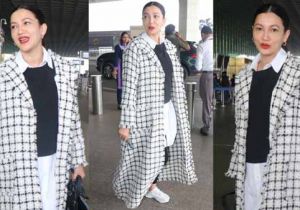 एयरपोर्ट पर स्पॉट हुईं मॉम टू बी गौहर खान: स्टाइलिश लुक में आईं नजर