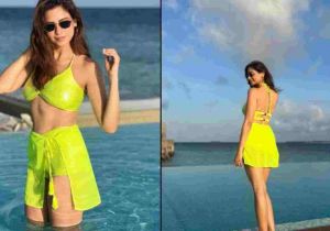 आमना शरीफ ने बिकिनी पहनकर पूल में की मस्ती