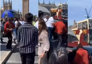 लंदन में सबसे छुपकर जा रहे थे फैन्स ने पकड़ लिया भागकर कार में बैठे शाहरुख खान