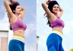डिलीवरी के कुछ समय बाद ही फिट हुई नुसरत जहां, पिंक स्पोर्ट्स ब्रा और ब्लू ट्राउजर में फ्लॉन्ट की टोन्ड बॉडी