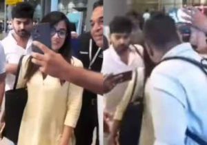 मुंबई एयरपोर्ट पर भीड़ के बीच बुरी तरह फंसीं रश्मिका मंदाना, बॉडीगार्ड ने निकाला