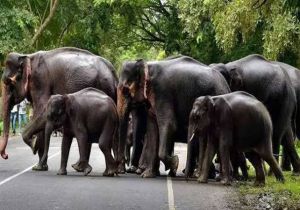 हाथी दल को भगाने गये वन कर्मियो व ग्रामीणो को घेरा हाथियो ने
