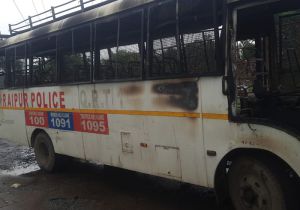 एसकेएस इस्पात में हड़ताली कर्मचारियों ने पुलिस की गाड़ी में लगाई आग,धरना जारी