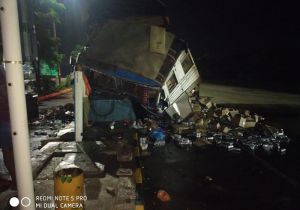 मंदिरहसौद टोल प्लाजा के पास बीयर से भरा ट्रक पलटी, कोई हताहत नहीं
