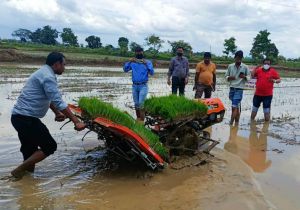 पैडी ट्रांसप्लॉटर मशीन से धान रोपाई के लिए बढ़ रहा है किसानों का रूझान