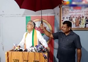 बीच कांफ्रेंस में जब टपक पड़ी बारिश की बूंदे, पीएसओ ने बचाया रमन को भिगने से