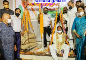 प्रभारी मंत्री का धान बीज से तौलकर जताया आभार