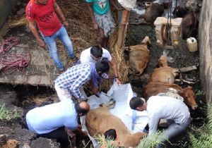 मवेशियों से भरा ट्रक गिरा, 19 गायों की मौत, 9 घायल