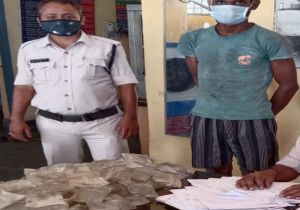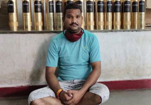 100 नग देशी पाउच के साथ तस्कर गिरफ्तार