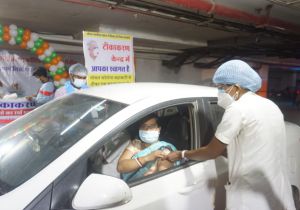 बुजुर्गों को कार में बैठे-बैठे वैक्सीन, वरिष्ठ नागरिकों के लिए ड्राइव इन वैक्सिनेशन की सुविधा दुर्ग जिले में आरम्भ