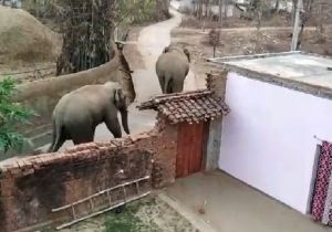 देर रात दो हाथी फिंगेश्वर शहर में घुसे
