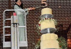 375 किलो का 5 मीटर ऊंचा केक,काटने के लिए हाइड्रोलिक लिफ्ट का इस्तेमाल करना पड़ा