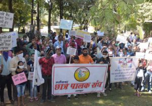 पूरी ट्यूशन फीस वसूली के विरोध में उतरे पालक,कलेक्टोरेट मे किया प्रदर्शन