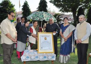 राज्यपाल को गोल्डन बुक आॅफ वर्ल्ड रिकार्ड संस्था ने वर्ल्ड रिकार्ड का प्रमाण पत्र प्रदान किया