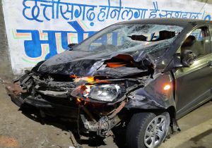 नशेड़ी कार चालक ने राजीव भवन की बाउंड्री वाल में घुसा दी कार