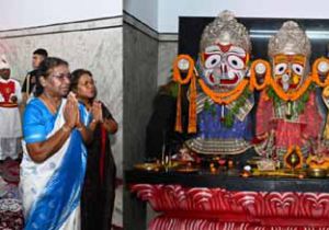 राष्ट्रपति द्रौपदी मुर्मु गायत्री नगर स्थित भगवान जगन्नाथ मंदिर में की पूजा अर्चना