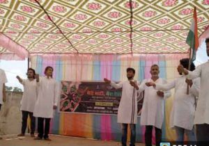 धरमपुरा में स्कूली छात्र-छात्राओं व युवाओं ने बनाया विशाल मानव श्रृंखला