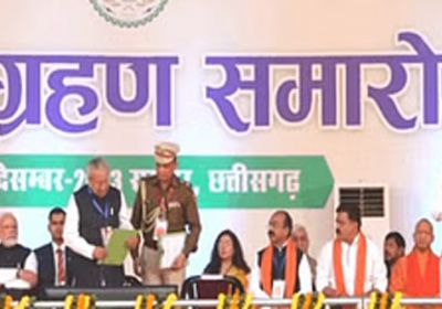 14 Dec, 2023 03:10 PM IST | SAMIKSHASAGAR.COMरायपुर. छत्तीसगढ़ के नए मुख्यमंत्री विष्णुदेव साय के शपथ ग्रहण समारोह के दौरान पीएम मोदी...