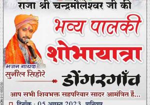5 Aug, 2023 11:15 AM IST | SAMIKSHASAGAR.COMडोंगरगांव शनिवार 5 अगस्त को भगवान चंद्रमौलेश्वर महाकाल की पालकी यात्रा हनुमान मंदिर से दोपहर को...