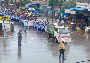 रिमझिम बारिश के बीच वॉकथॉन रैली में स्कूली छात्र-छात्रों के साथ अधिकारी व कर्मचारी हुए शामिल