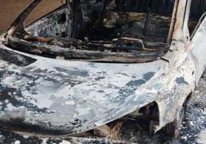 सड़क हादसे में कार में लगी आग, जिंदा जल गया ट्रांसपोर्टर