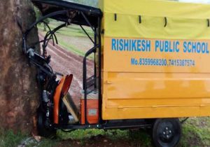 स्कूली रिक्शा पेड़ से टकराया, तीन छात्र व रिक्शा चालक गंभीर रूप से घायल