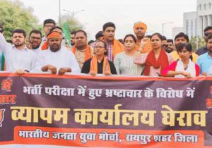 22 Jul, 2023 10:45 AM IST | SAMIKSHASAGAR.COMरायपुर भारतीय जनता युवा मोर्चा ने अपनी चार सूत्रीय मांगों को लेकर शुक्रवार को भर्ती में...
