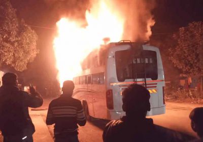 जगदलपुर : यात्री बस में लगी अचानक भीषण आग, कई यात्रियों ने कूदकर बचाई जान