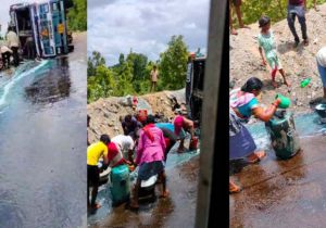 कोड़ेनार के पास पलटा डीजल से भरा टैंकर हजारों लीटर डीजल बह गया