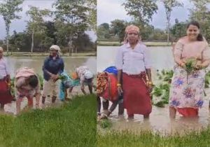 खुज्जी विधायक छन्नी ने किसानों के साथ की धान की रोपाई