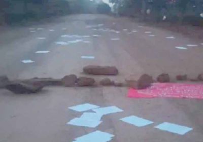 नक्सलियों ने बीच सडक में बैनर बांधकर बड़े पैमाने पर फेंके पर्चे
