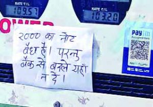 पेट्रोल पंप पर नोटिस चस्पाकर : 2000 के नोट वैध, परंतु बैंक में बदलें यहां से नहीं...
