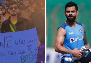 PAK vs ENG टेस्ट में दिखा विराट कोहली का क्रेज, पोस्टर पर लिखा नजर आया- किंग बाबर से ज्यादा आपको देंगे प्यार