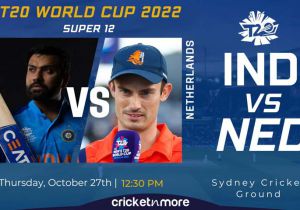 27 Oct, 2022 09:11 AM IST | SAMIKSHASAGAR.COMनई दिल्ली टीम इंडिया अपने दूसरे मुकाबले में 27 अक्टूबर (गुरुवार) को नीदरलैंड का सामना करने...