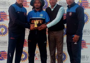 21 Jan, 2022 08:40 PM IST | SAMIKSHASAGAR.COMकारपोरेट ग्रुप से आरएनटीयू भोपाल के बल्लेबाज राहुल शिंदे को शानदार बल्लेबाजी के लिए मैन...