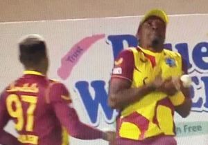 ड्वेन ब्रावो के हाथ से छूटी गेंद को फैबियन एलेन ने बनाया स्टनिंग कैच