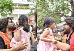 बेटी को गोद में लिए गणेश विसर्जन करने पहुंचे अल्लू अर्जुन