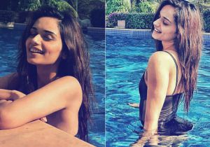 मानुषी ने जयपुर में दिए पूल साइड ट्रांसपेरेंट ड्रेस और बिकिनी में स्टालिश पोज