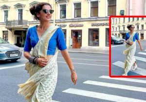 साड़ी-ब्लाउज के साथ स्पोर्ट शूज पहनकर सड़क पर निकलीं तापसी पन्नू