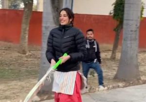 जाह्नवी कपूर ने सलवार-सूट पहनकर घुमाया बल्ला, शूटिंग के बीच में किक्रेट खेलती आईं नजर