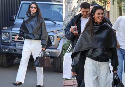 ब्लैक लैदर जैकेट, ओपन हेयर्स के स्टाइलिश लुक में स्पॉट हुईं केंडल जेनर