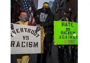 रिहाना हरे और गुलाबी रंग के प्लेकार्ड्स लिए न्यूयॉर्क की सड़क पर उतरीं