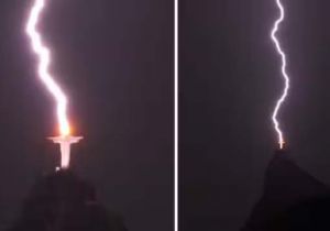 जीसस क्राइस्ट ऐतिहासिक स्टैच्यू पर गिरी बिजली, अद्भुत नजारा कैमरे में कैद