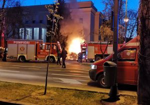 रोमानिया में रूसी दूतावास से टकराई कार, लगी भीषण आग