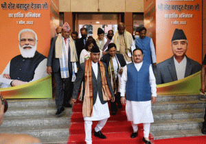 नेपाली कांग्रेस के अध्यक्ष के नाते बीजेपी के कार्यालय गए प्रधानमंत्री शेर बहादुर