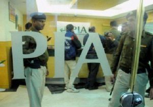 पाकिस्तान एयरलाइंस के उच्चाधिकारियों के माथे पर तानी बंदूक