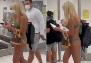 बिकिनी पहनकर एयरपोर्ट पहुंची महिला
