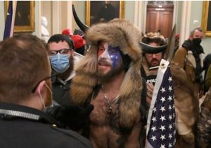 सिर पर सींग व फर वाली टोपी, छाती पर टैटू और संसद भवन के अंदर कॉनफेडरेट ध्वज पकड़े ट्रंप समर्थक पहुंचा जेल