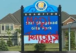 कनाडा में श्री भगवद गीता पार्क पर हमला, नारे लिखकर की तोड़फोड़